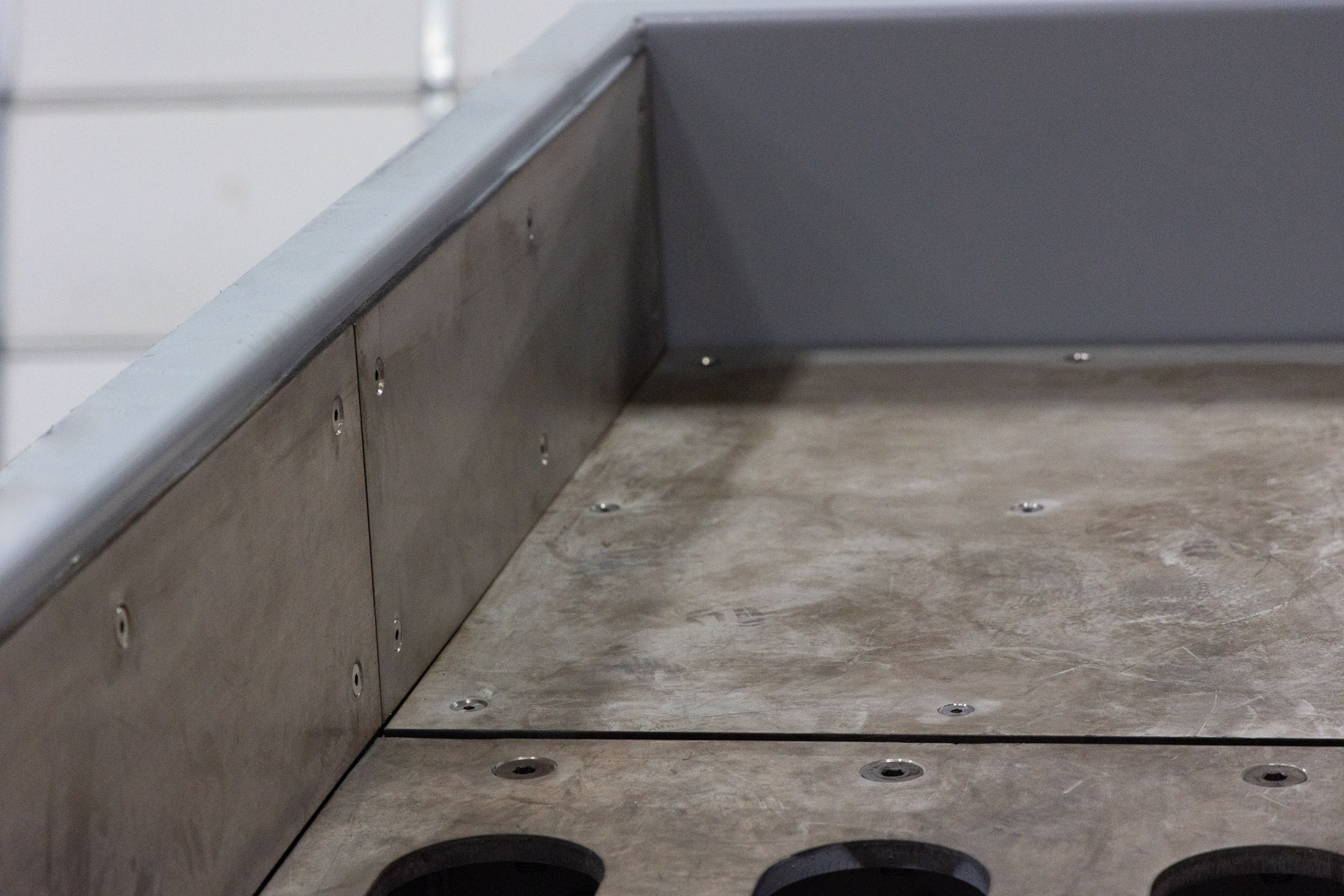 Recognizing petroleum coke’s highly abrasive material characteristics, JVI incorporated full wear liner coverage on all material contact areas. ½” thick 316 stainless steel liners cover the impact are where material first contacts the screen, while the side walls and discharge areas are protected with 3/8” thick 316 stainless steel liners. All the liners are bolted and fully replaceable, allowing the refinery to replace the worn liners as needed.